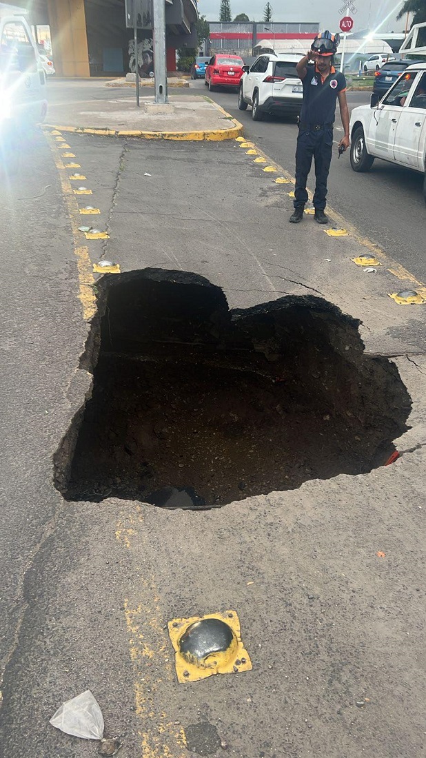 La tarde de éste martes, se reportó al 911 que había un enorme agujero en el pavimento, entre los carriles del boulevard Arandas, por lo cual se desplazaron unidades a revisar y confirmaron que había un colapso.