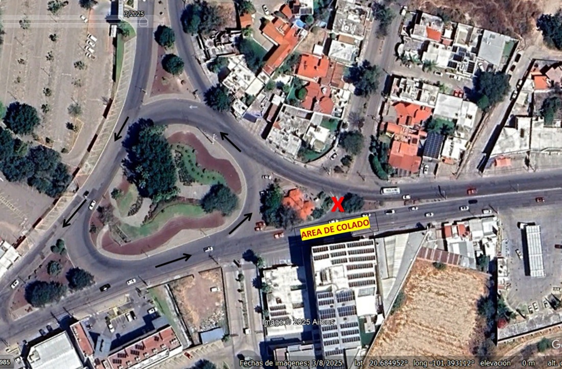 La subida, localizada frente al Hotel Concordia (pasando la glorieta), permanecerá cerrada para quienes circulen desde Cuchicuato o desciendan de Villas de Irapuato con intención de