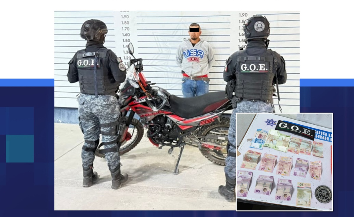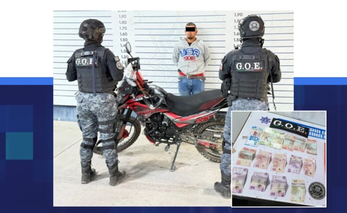 El detenido, junto con los objetos asegurados y la motocicleta, fue puesto a disposición de la autoridad competente para determinar su situación legal.