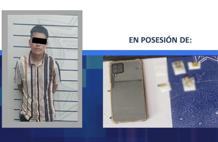 Por este motivo, fue detenido Miguel Ángel «N», de 23 años de edad, quien además en la consulta de datos en bases policiales, resultó con ocho ingresos por el delito de robo, alterar el orden público e intoxicarse en la vía pública.