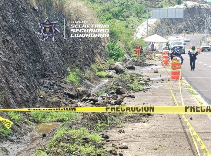 Irapuato, Gto. (Opinión Bajío).- Para evitar riesgos por alguno deslaves en el cerro de Arandas por las intensas lluvias, se cerraron a la circulación dos carriles en sentido de Arandas hacia plaza Cibeles.