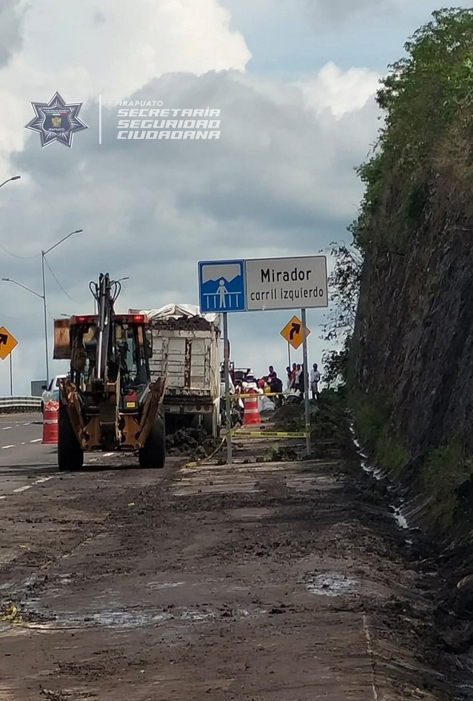 Esta medida se tomó debido que por ls lluvias consierables que se registran desde hace varios días, hubo deslaves de lodo y desprendimiento de rocas del cerro, que cayeron en un canal de desfogue y las banquetas así como el carril de baja velocidad, por lo cual ya autoridades municipales encabezadas por Protección Civil han iniciado los trabajos.