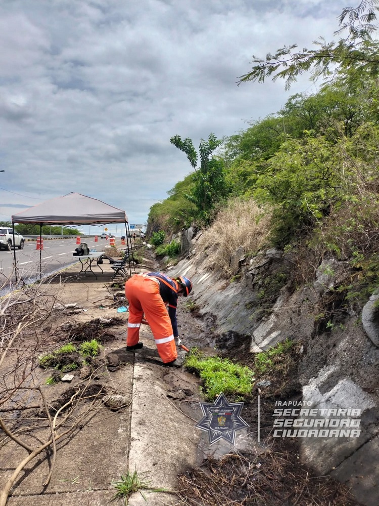 «Se mantienen cerrados temporalmente dos carriles de circulación en el tramo de Bulevar Arandas a Bulevar a Villas… Personal de @IrapuatoPCyBom en coordinación con Servicios Públicos Irapuato, Obras Públicas y Japami Irapuato trabajaron en la av. Cuarto Cinturón Vial en la limpieza y colocación de muros para disminuir posibles riesgos a peatones y automovilistas», informó a través de redes sociales la Secretaría de seguridad Ciudadana.