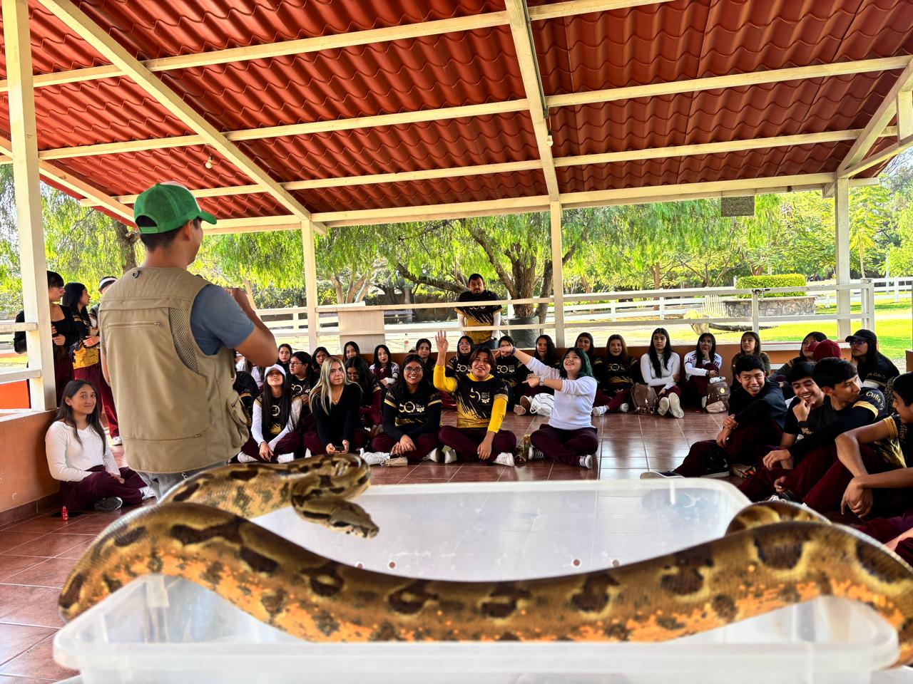 El paquete dinámico les incluye adicional una plática con los médicos veterinarios quienes les hablan a los estudiantes sobre la importancia del cuidado del medio ambiente, sacan algunos animales, exhibición, se les explica sobre esos ejemplares y al final se hacen preguntas y respuestas. Es una plática didáctica, interactiva, divertida, se sorprenden mucho y se divierten.