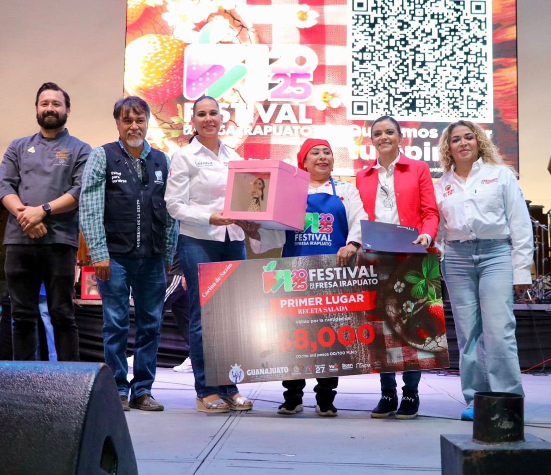 Arcelia González González, secretaria de la Honestidad, en representación de la gobernadora del Estado, Libia Dennise García Muñoz Ledo, reconoció la organización del Festival de la Fresa y la entrega del galardón “Fresa de Oro”, tradición que inició hace 10 años y que se ha consolidado como un gran orgullo para Irapuato y para Guanajuato.