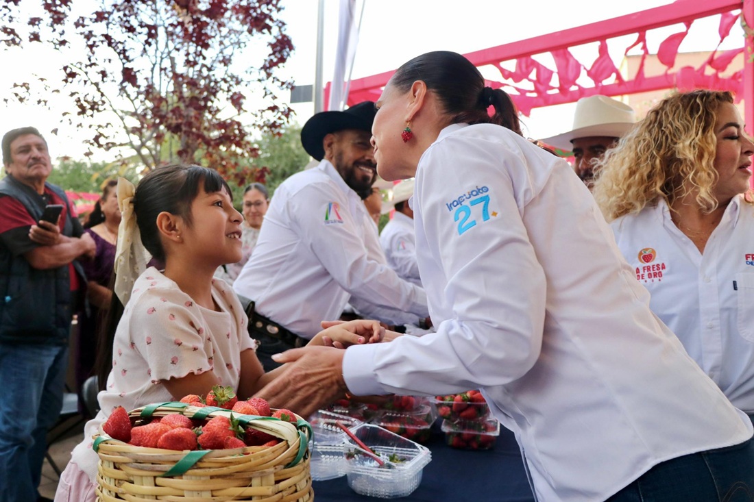 “La Gobernadora me pidió venir a decirles que los tiene en el corazón, que ve en Irapuato a la gente buena que produce, a quienes trabajan el campo con amor. Cuando sembramos con esfuerzo, cosechamos fresas, y cada vez que comemos fresas, comemos el corazón de