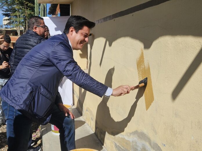 Luego del protocolo, los participantes dieron los primeros brochazos de pintura de este programa, con el que se mejora la imagen de las viviendas en comunidades de Manuel Doblado.