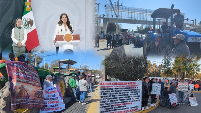 Irapuato, Gto. (Opinión Bajío).- Mientras en la parte exterior de la XII Región Militar había protestas campesinas con tractores, derechohabientes del IMSS que exigían medicamentos, tratamientos y cirugías, así como morenistas que mostraban su apoyo y respaldo, la Presidenta Claudia Sheinbaum Pardo afirmó que están bajando los homicidios, pese a las masacres constantes.