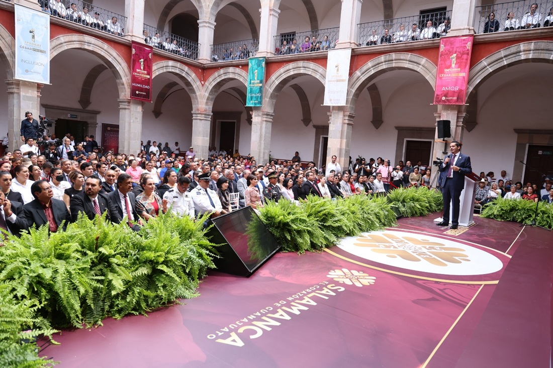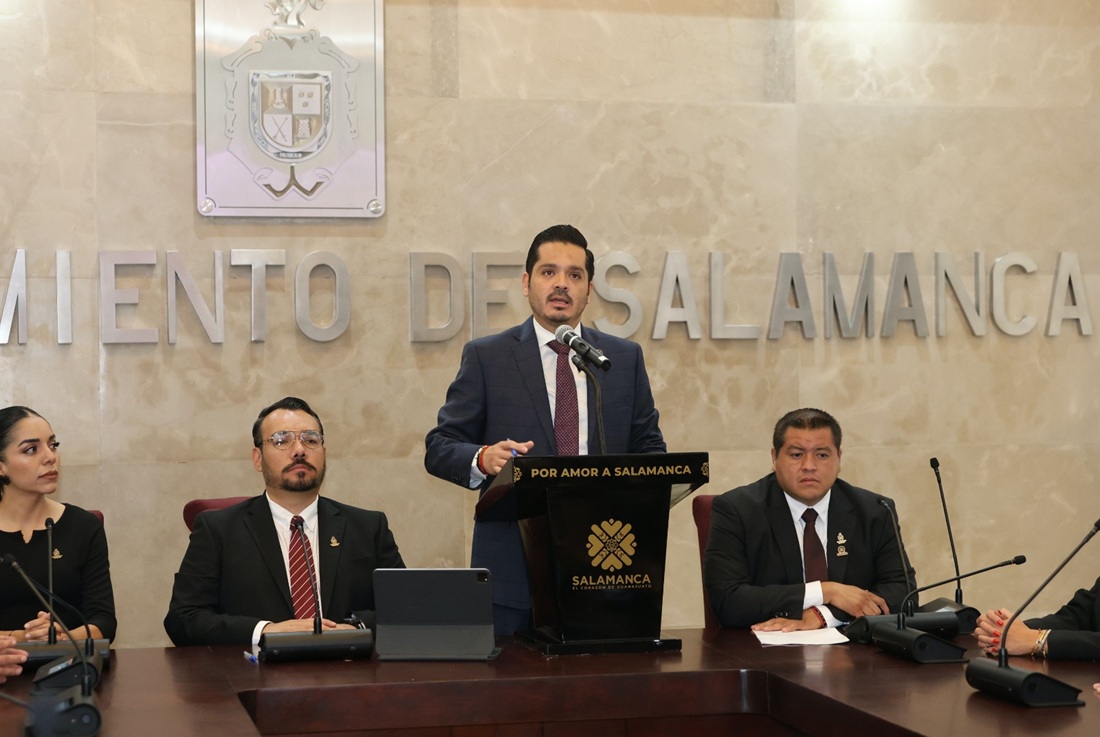 Durante su mensaje, el primer edil, subrayó que los avances alcanzados son resultado del trabajo en equipo y del compromiso conjunto para sentar las bases de un progreso social y urbano sólido en Salamanca.