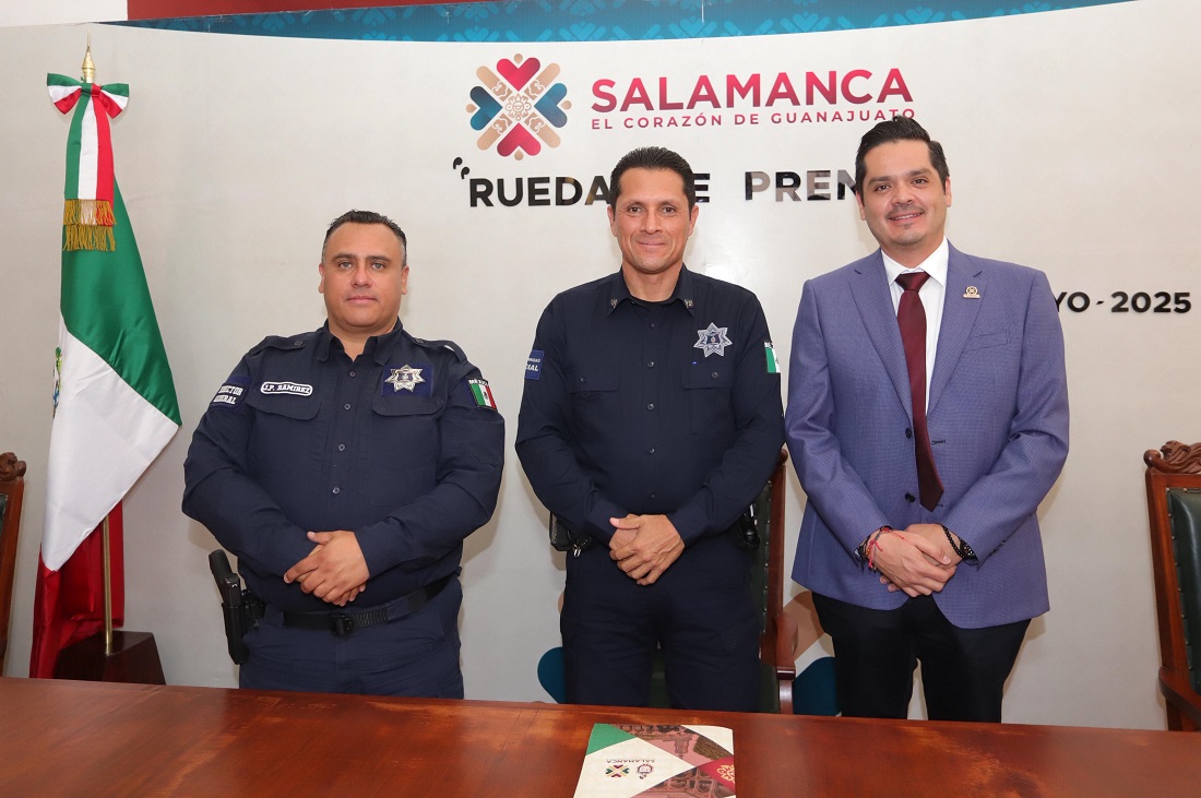 Salamanca, Gto. (Opinión Bajío).- Como parte de su compromiso con la seguridad y el bienestar de la ciudadanía, el presidente César Prieto presentó en rueda de prensa al nuevo Comisario de Seguridad Pública de Salamanca, Pedro Alberto Cortés Zavala, quien desempeñará un papel fundamental en materia de mantenimiento del orden público, supervisión de oficiales, implementación de políticas de seguridad, gestión de recursos y colaboración con otras dependencias.