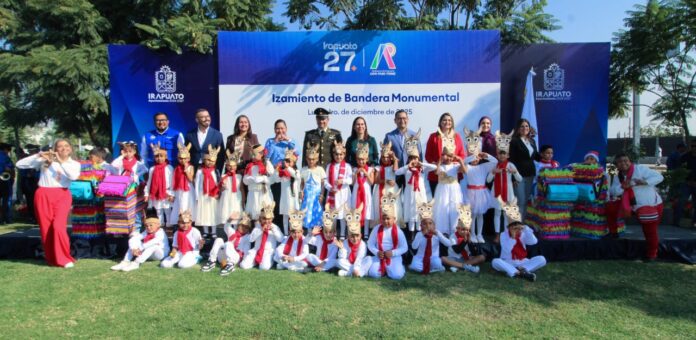 Irapuato Gto. (Opinión Bajío).- Para arrancar el mes de diciembre, recordar las tradiciones y promover los valores cívicos, autoridades municipales realizaron honores e izamiento de la bandera monumental en Irapuato.