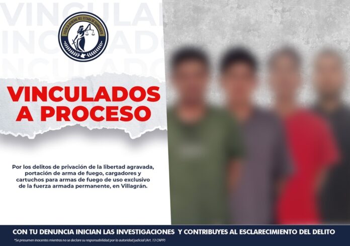 Así mismo, se aseguró un vehículo de modelo reciente, utilizado para las actividades ilícitas del grupo. Tras presentar las pruebas recabadas en la carpeta de investigación, la Fiscalía obtuvo del Juez de Control la vinculación a proceso para los cuatro detenidos por el delito de privación de la libertad agravada, sumando cargos adicionales por portación y posesión de armas de fuego y cartuchos de uso restringido.