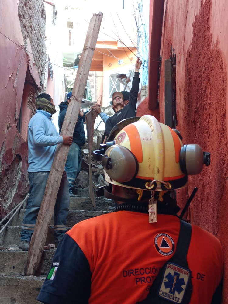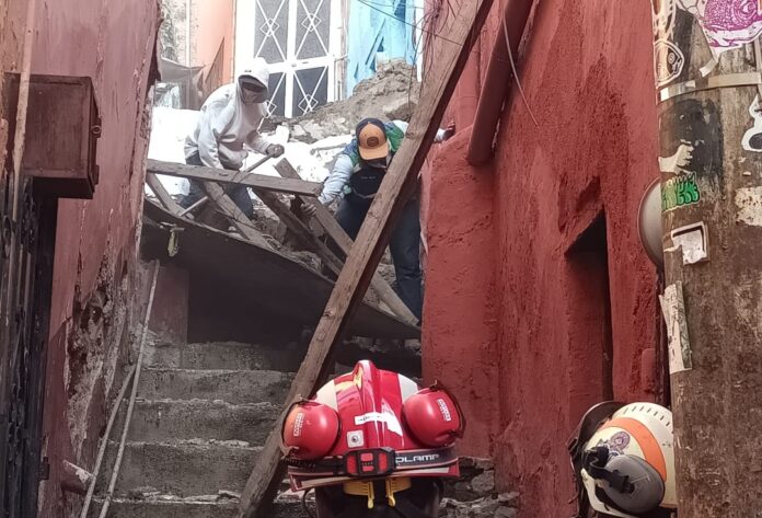 Guanajuato, Gto. (Opinión Bajío).- Debido a las fuertes lluvias y tormentas que se han registrado, una casa en un callejón de Guanajuato capital se derrumbó, sin causar lesionados. También se derrumbó la fachada de otra casa.