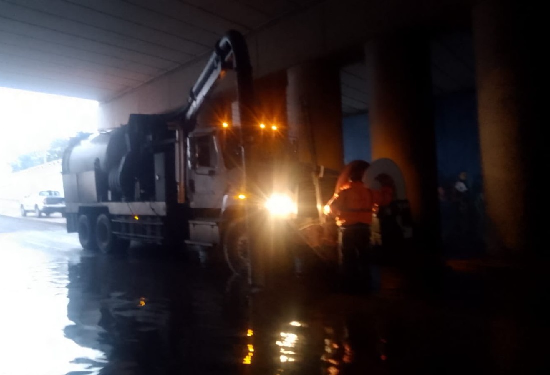 El grupo «tormenta» donde participan JAPAMI, Protección Civil, TRánsito y Servicios Públicos estuvo activo toda la noche; incluso, todavía por la mañana de éste sábado, había agua en el paso a desnivel del Cuarto Cinturón Vial.