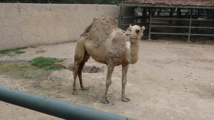 “Nos encontramos con estos bonitos ejemplares, estos son dromedarios: ‘Galilea’ nuestra hembra y el macho que se llama ‘Cuauhtémoc’; ellos son familiares del camello y de las llamas. Contrario a la creencia popular, el dromedario es el que tiene una sola joroba y el camello tiene dos jorobas, a la que se le llama jiba”, señaló la doctora Gaby, del ZooIra.
